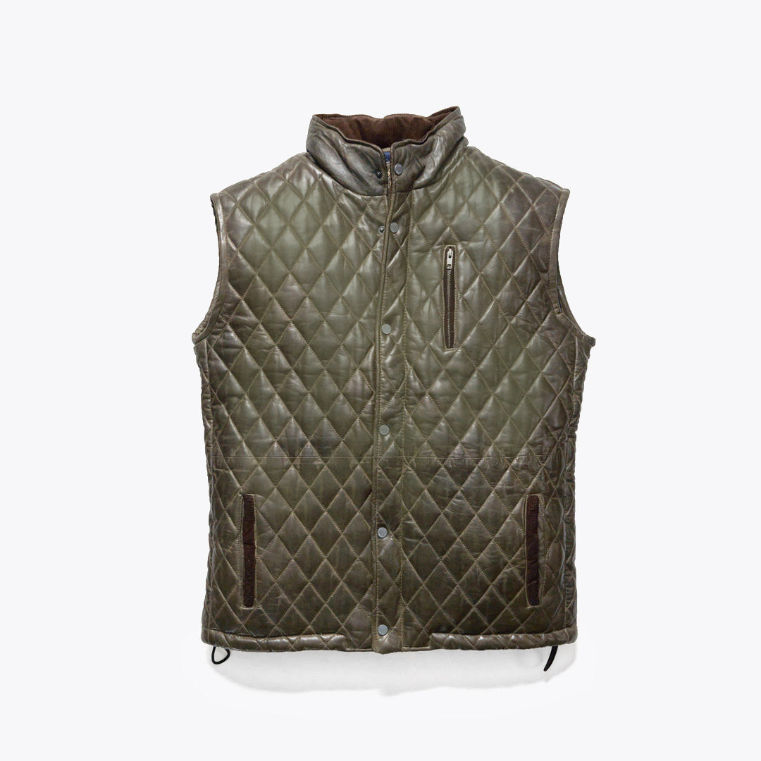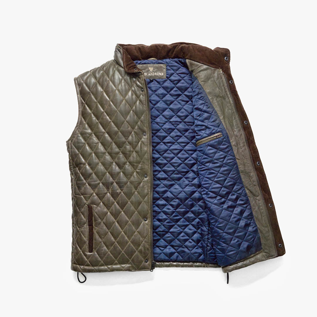 Highlands Quilted Leather Vest | Olive Green