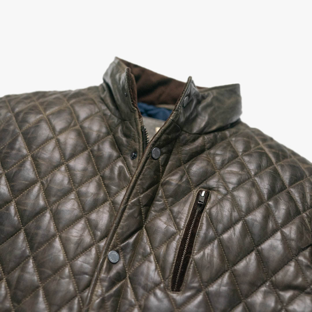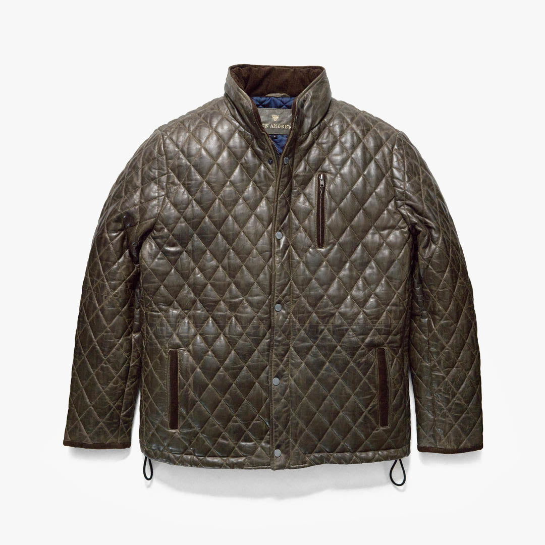Highlands Quilted Leather Jacket | Olive Green