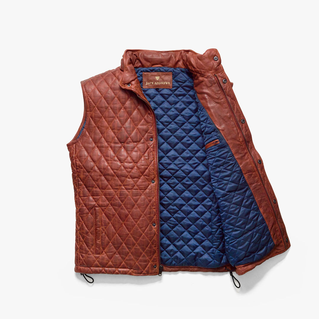 Highlands Quilted Leather Vest | Whiskey Brown