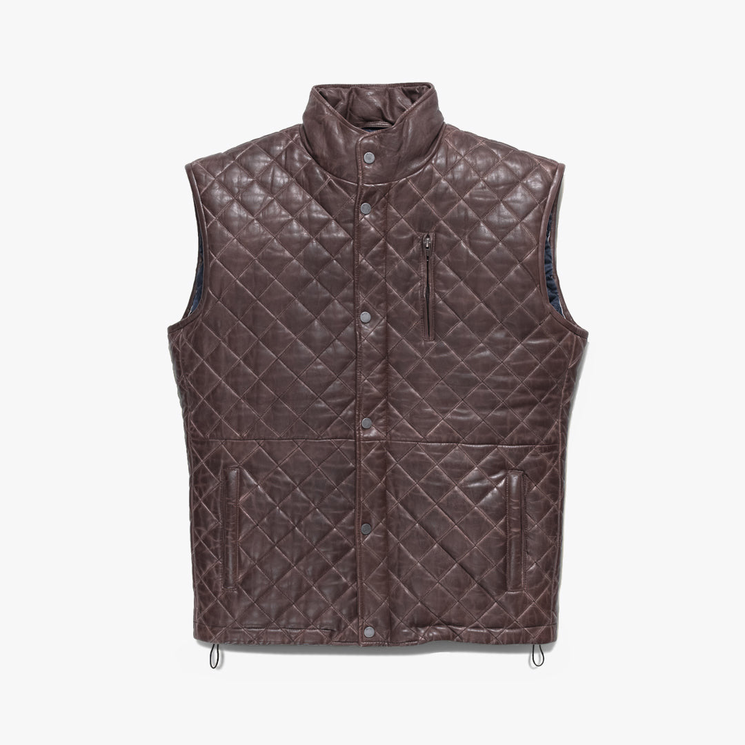 Highlands Quilted Leather Vest | Mahogany Brown