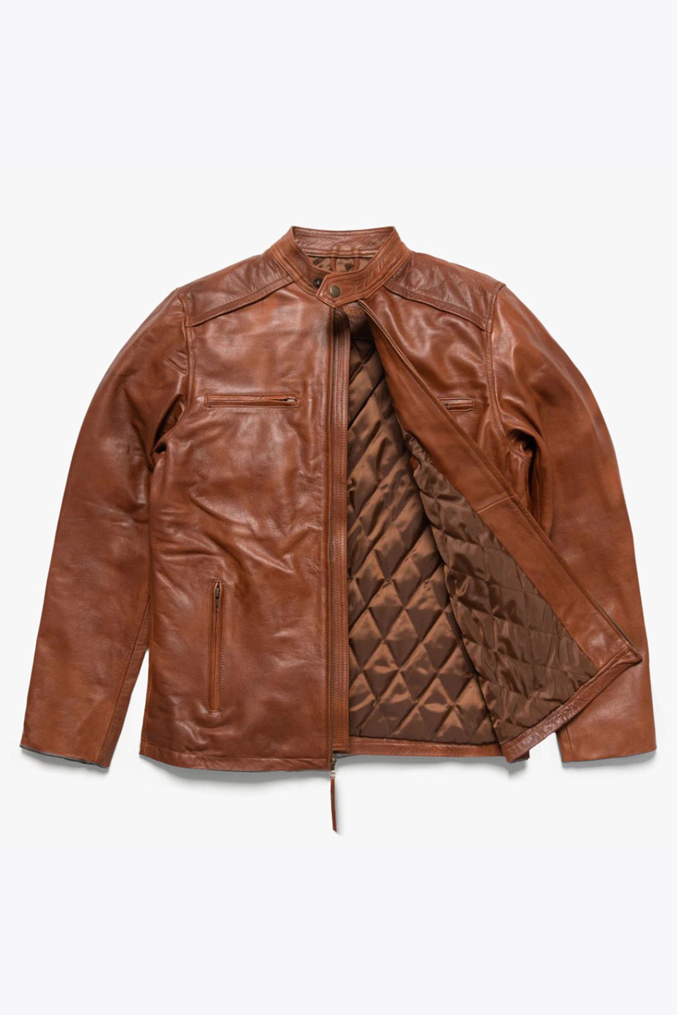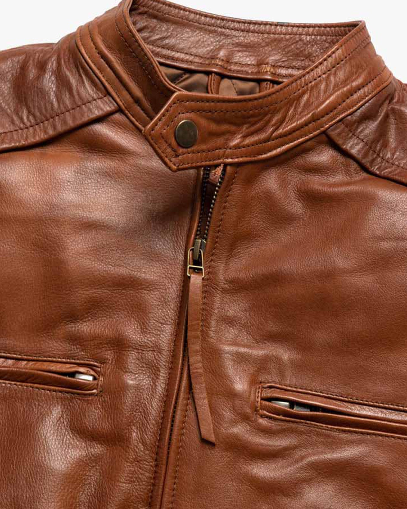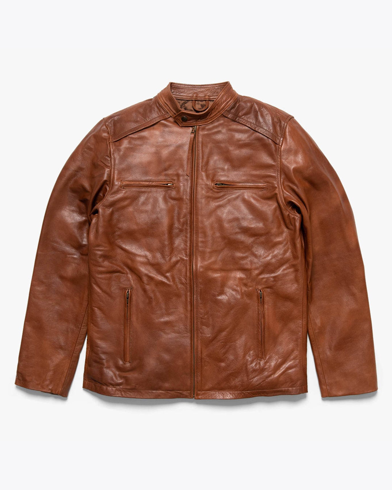 Consider our Glenwood Leather Driving Jacket, a masterpiece of slim-fitting design, meticulously crafted from full-grain leather and adorned with intricate stitching. It features a luxuriously comfortable lined interior, coupled with ample storage thanks to three front zippered pockets. Alternatively, explore our Highlands Leather Jacket, a piece destined to become a cherished heirloom. Like a fine wine, all our men’s leather jackets age with grace, becoming even more distinguished with time.